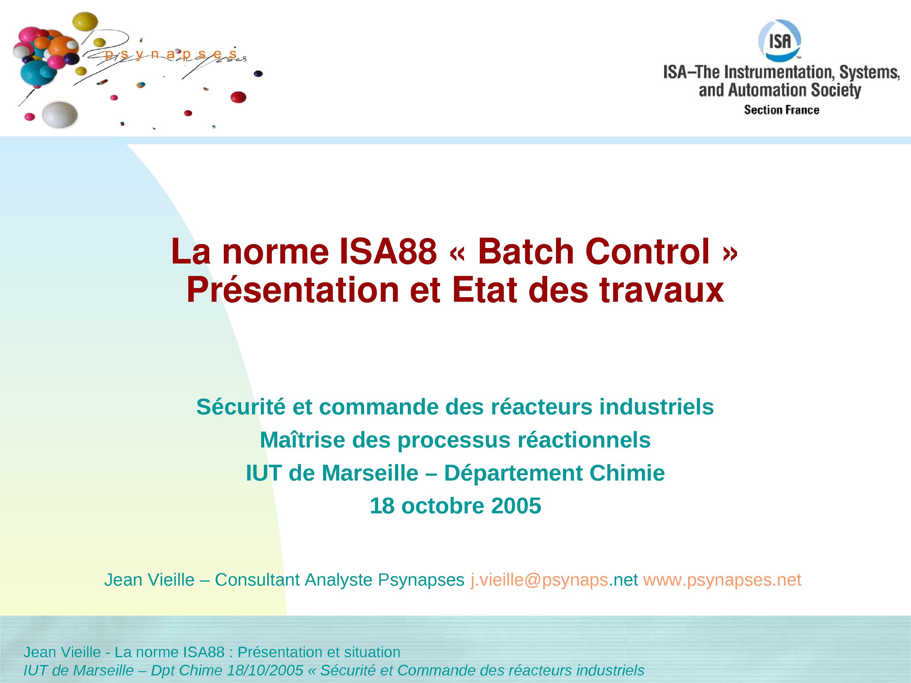 2005 - IUT Marseille - La norme ISA88 « Batch Control » Présentation et Etat des travaux.ppt