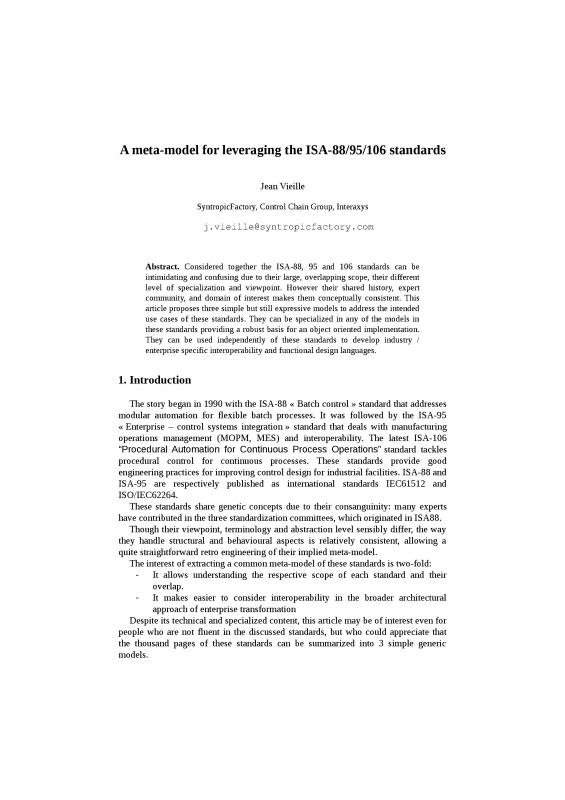 2015 A meta-model for leveraging the ISA-88, ISA-95 and ISA-106 standards